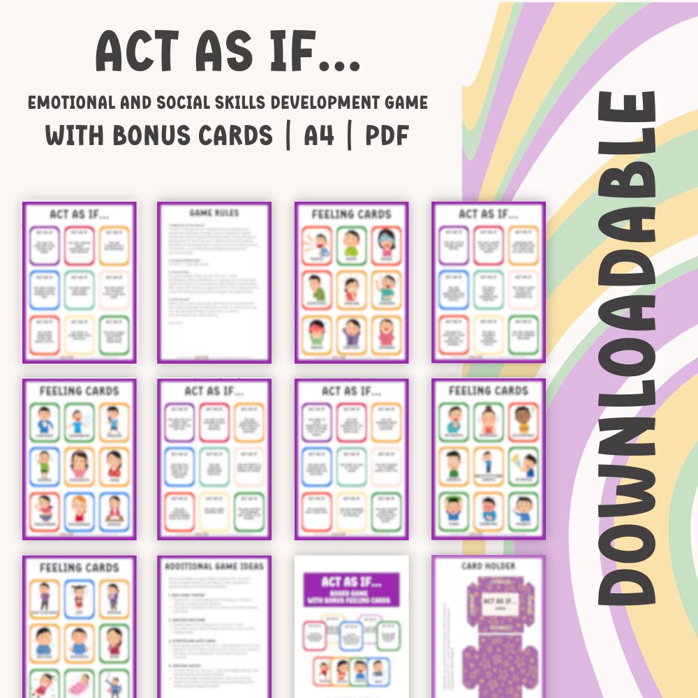 - The player who draws an “Act as if…” card acts out the given situation as if they were really experiencing it.