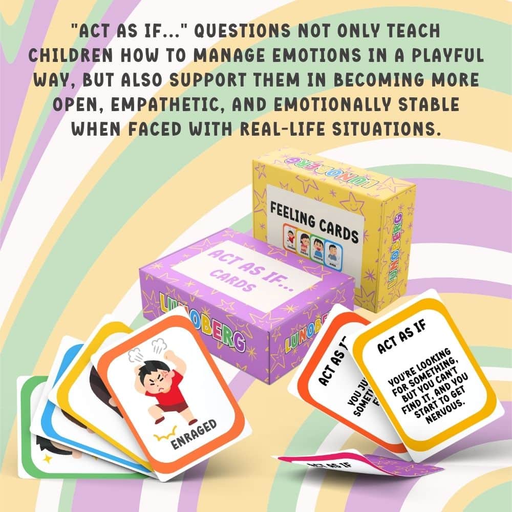 ✔ 99 “Act as if…” Cards – Help develop emotional intelligence by encouraging imagination and role-playing.