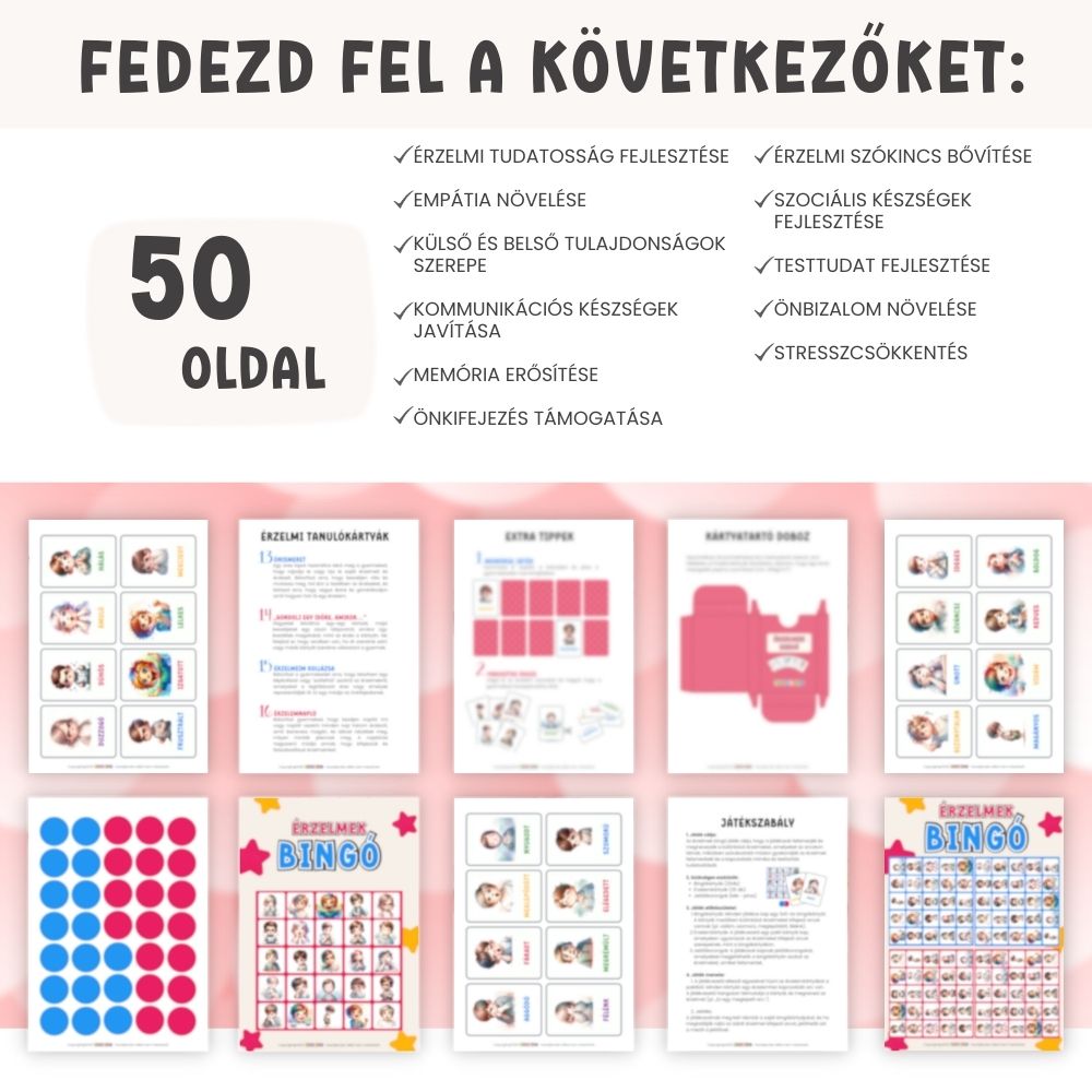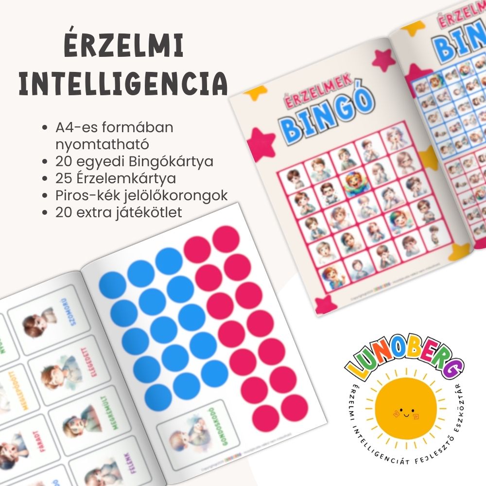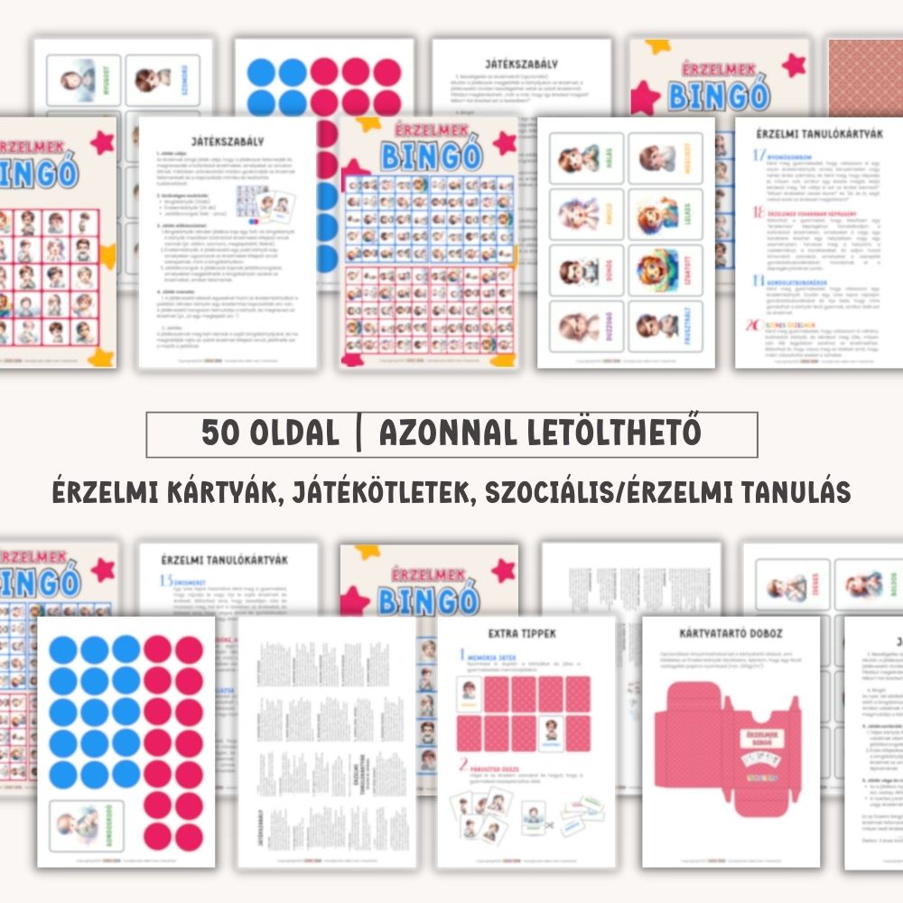 Tedd az érzelemfelismerést élménnyé – az Érzelmek bingóval a gyerekek örömmel és magabiztosan tanulnak saját érzéseikről.