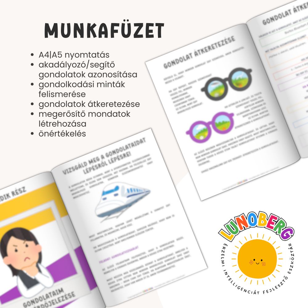 A gondolataink hatással vannak arra, hogyan érezzük magunkat, mennyire bízunk magunkban és hogyan birkózunk meg a kihívásokkal. Ez a munkafüzet játékos, érthető feladatokon keresztül segít a gyerekeknek abban, hogy különböző gondolkodási stratégiákon keresztül felismerjék saját gondolataikat, és megtanulják erőforrásként használni őket.