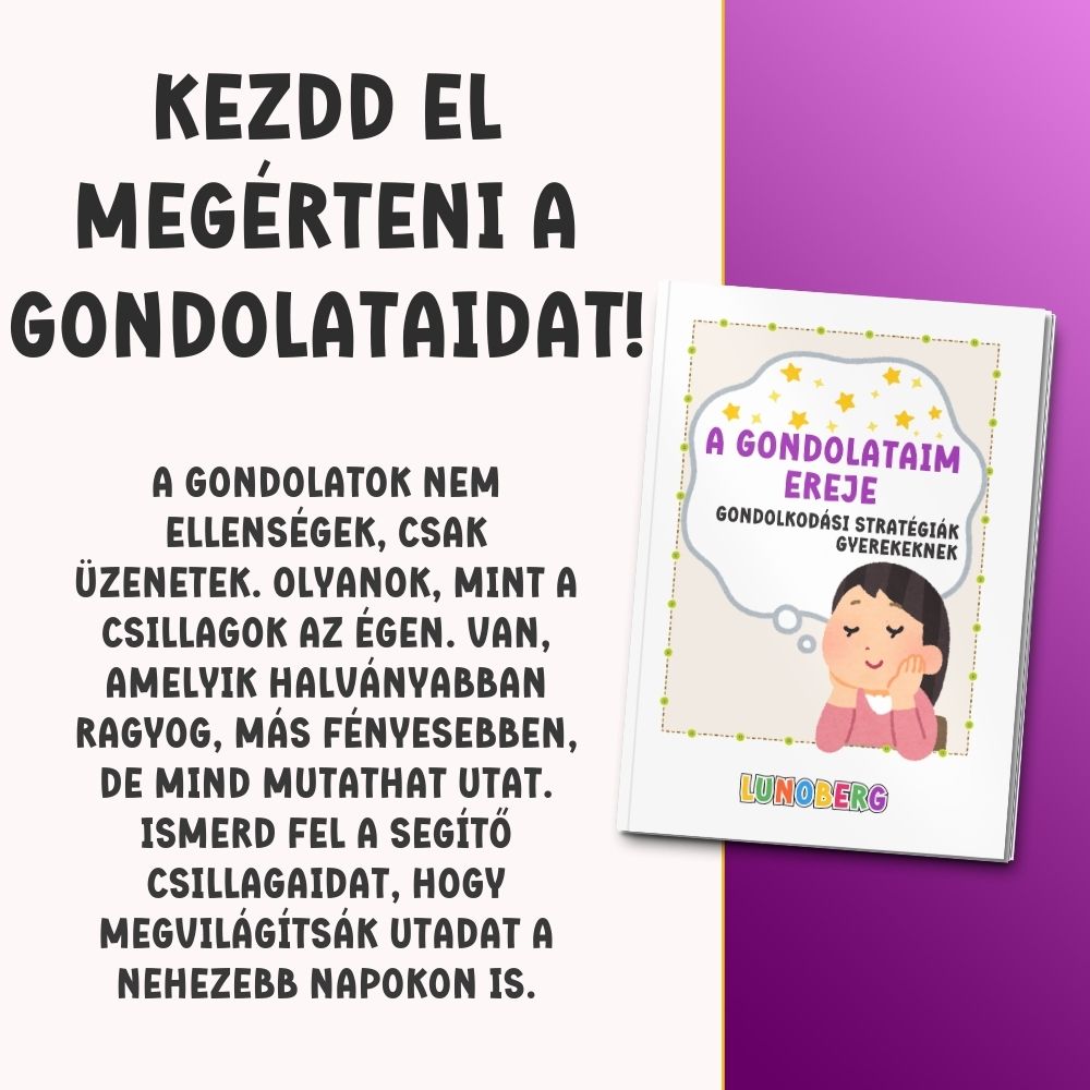 👉 „A gondolataim ereje” nemcsak egy munkafüzet, hanem egy kis útitárs, amely végigvezeti a gyerekeket azon az úton, ahol megtanulják: a gondolataikban sokkal több erő rejlik, mint gondolnák.