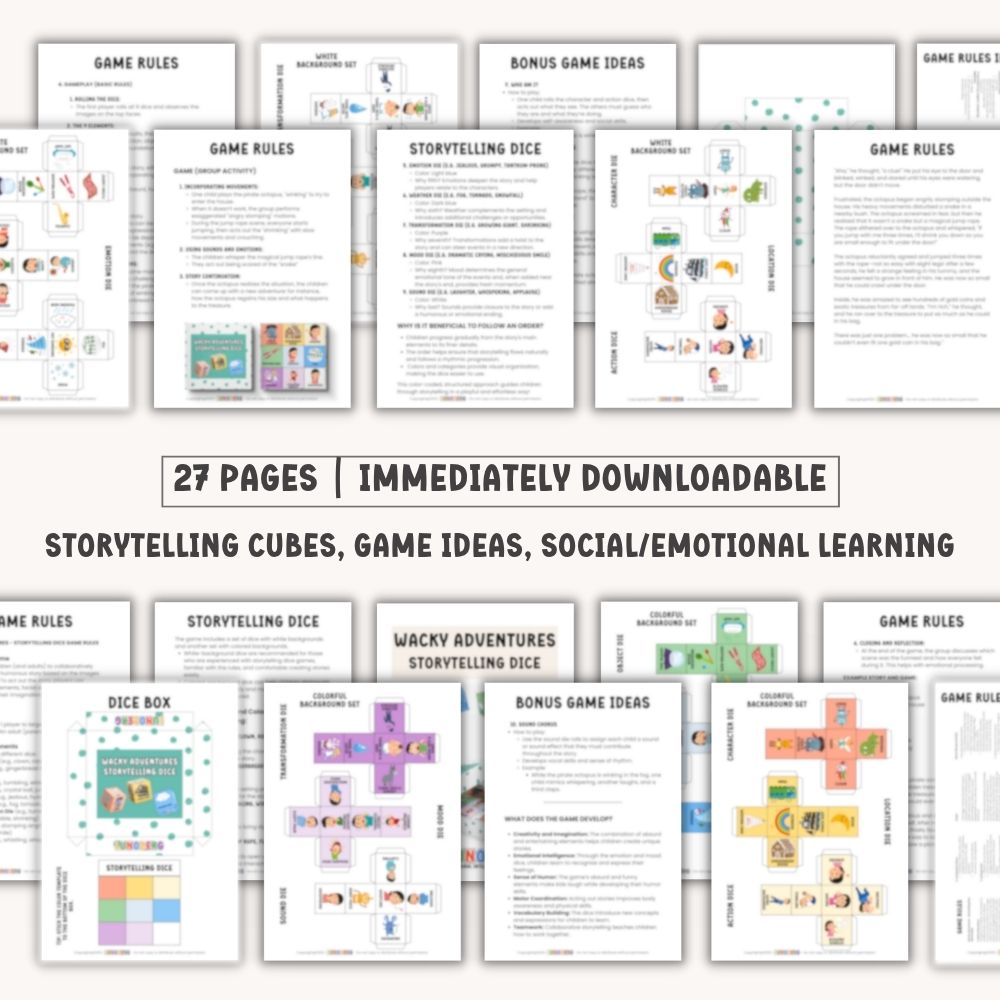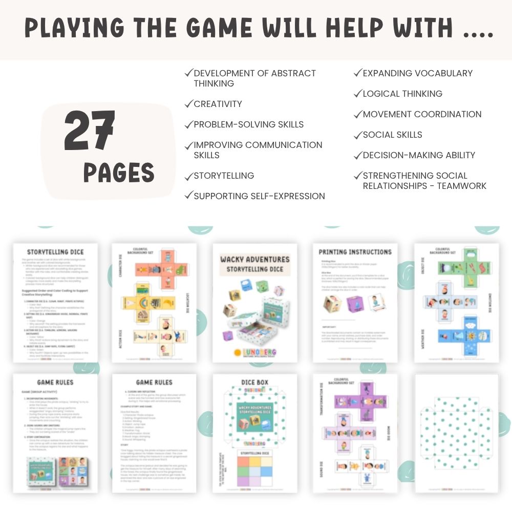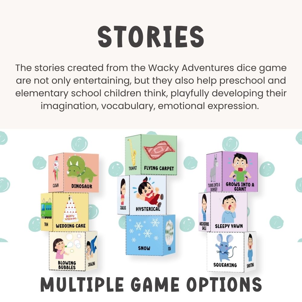 - Boosts Creativity and Imagination: Children create fun and unique stories using the elements on the dice.