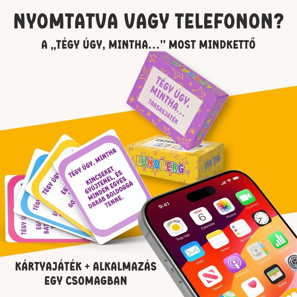 Az alkalmazás iPhone-ra és Androidra is elérhető, és 99 digitális „Tégy úgy, mintha…” feladatkártyát tartalmaz. A kártyák véletlenszerűen jelennek meg, így minden alkalommal új helyzetbe repítik a gyerekeket.