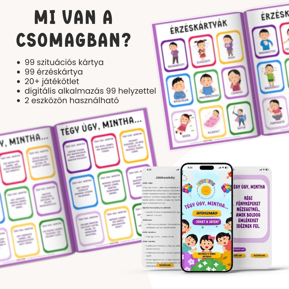 99 db „Tégy úgy, mintha…” szituációs kártya